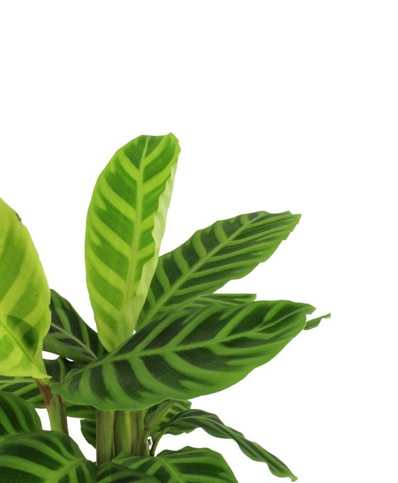 Goeppertia were previously classified as Calathea, you may see this plant labelled as Calathea zebrina.