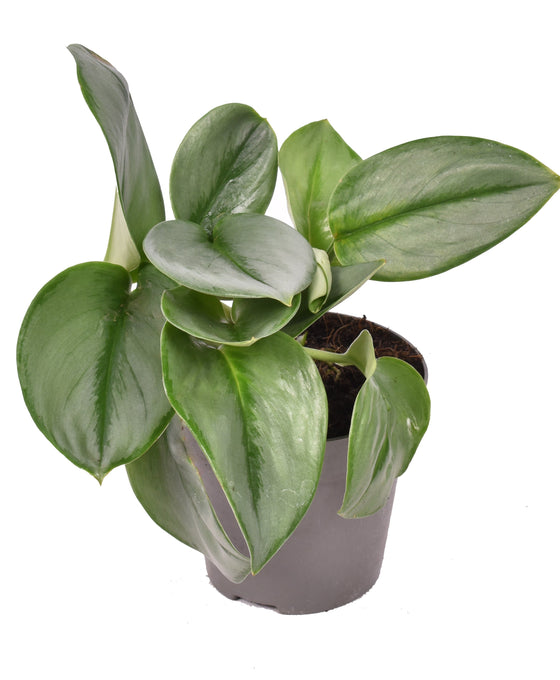 Scindapsus treubii is part of the Araceae family and its native range is Peninsula Malaysia, NW. Borneo, Java. This plant will shingle up the bark of host trees, laying almost completely flat to the trunk. ‘Moonlight’ has a silver-green leaves with thick cuticle - suggesting it’s able to hold on to moisture. Support growth by providing a moss pole for this plant to climb, this will also encourage larger leaves.