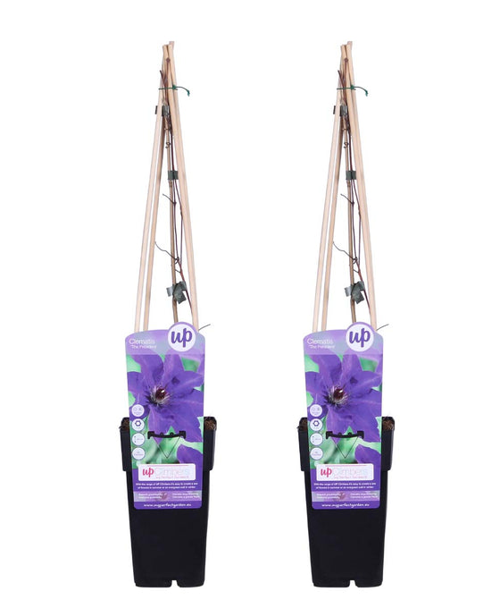 Clematis 'President' is a vigorous and popular large-flowered clematis cultivar, celebrated for its abundant, deep purple-blue blooms. This clematis produces masses of showy flowers, up to 15cm (6in) in diameter, with overlapping, velvety petals and contrasting reddish-purple anthers. It flowers profusely in late spring and early summer, with a possible second flush of blooms in late summer. It's a versatile climber, suitable for growing in gardens, containers, or even as a small, manageable climber in more compact spaces. It belongs to the Ranunculaceae family.