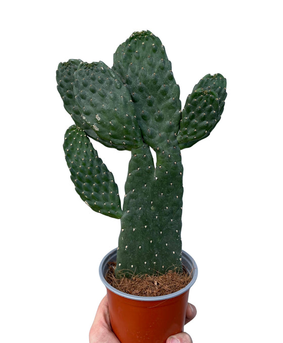 This is an almost spineless species with flattened cladodes and bumpy areoles. In its native environment it can reach up to 6m in height. Flowers are brightly coloured (red, orange or yellow) and they produce and a showy fruit.