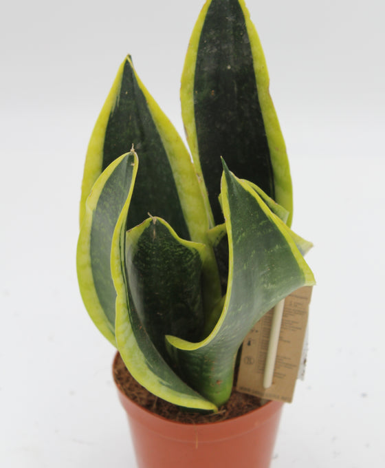 Dracaena trifasciata is native to Nigeria and tropical Africa. A perfect plant for beginners. It will grow in bright sunshine or shade, withstand dry air, draughts and periods without water, and it rarely needs re-potting. It can however, be quite easily killed by prolonged over-watering in winter and prolonged exposure to near freezing temperatures. 'Black superba' has almost black colouring and yellow edges.